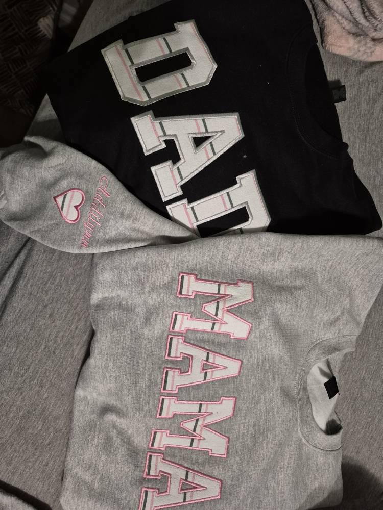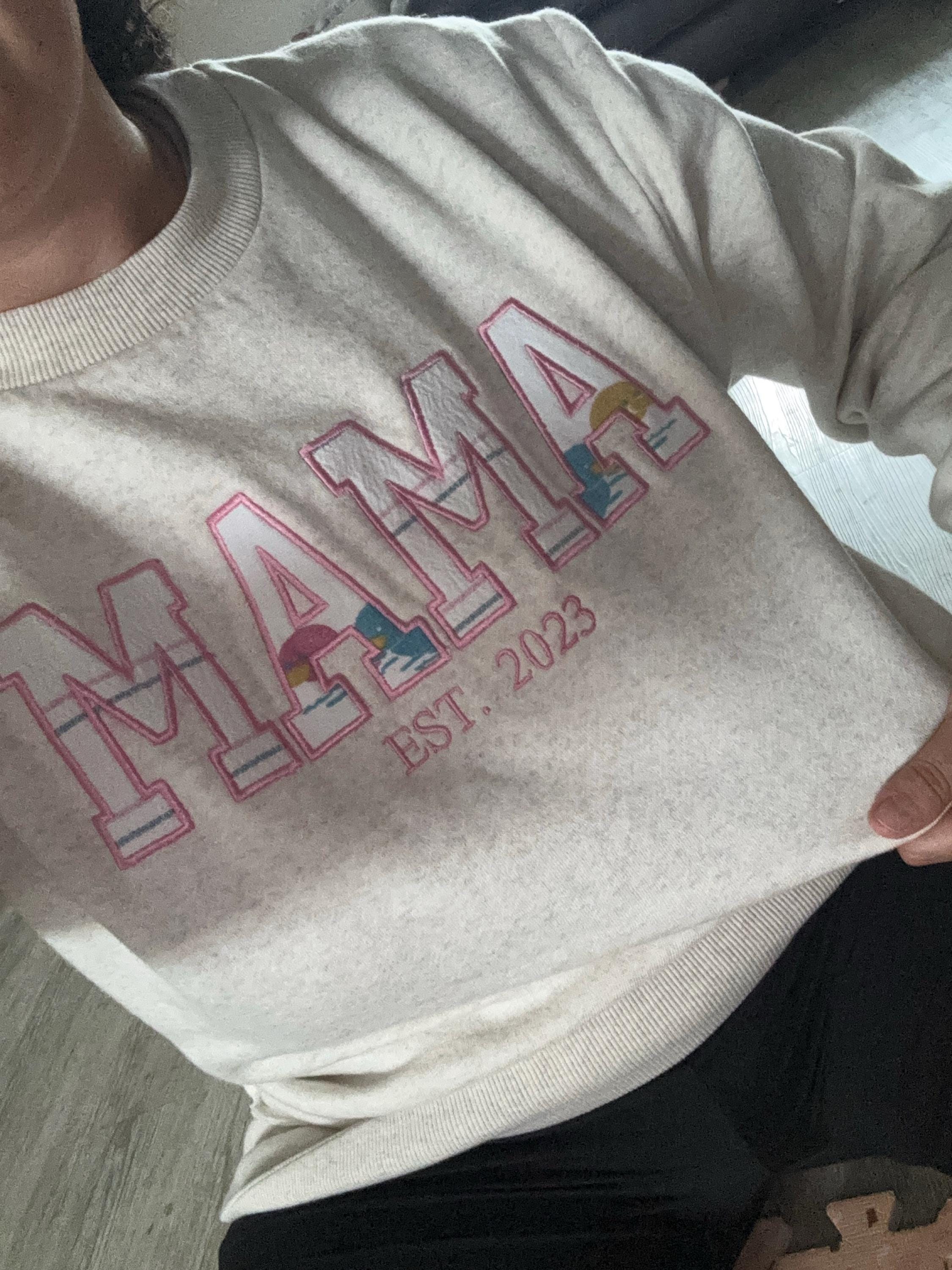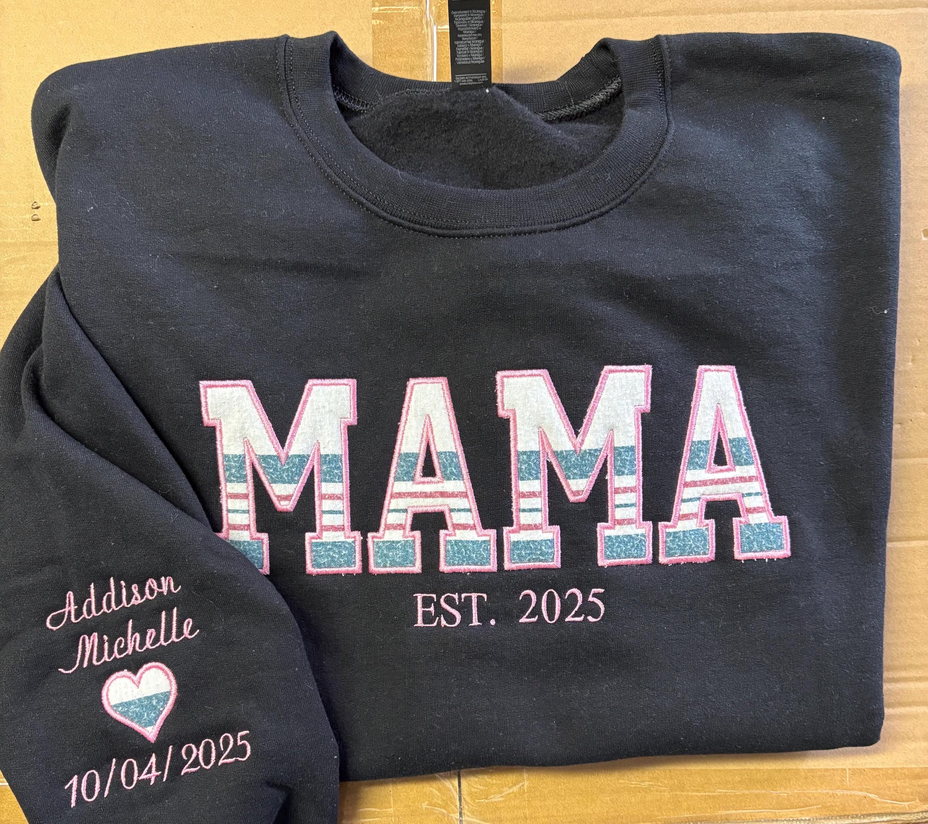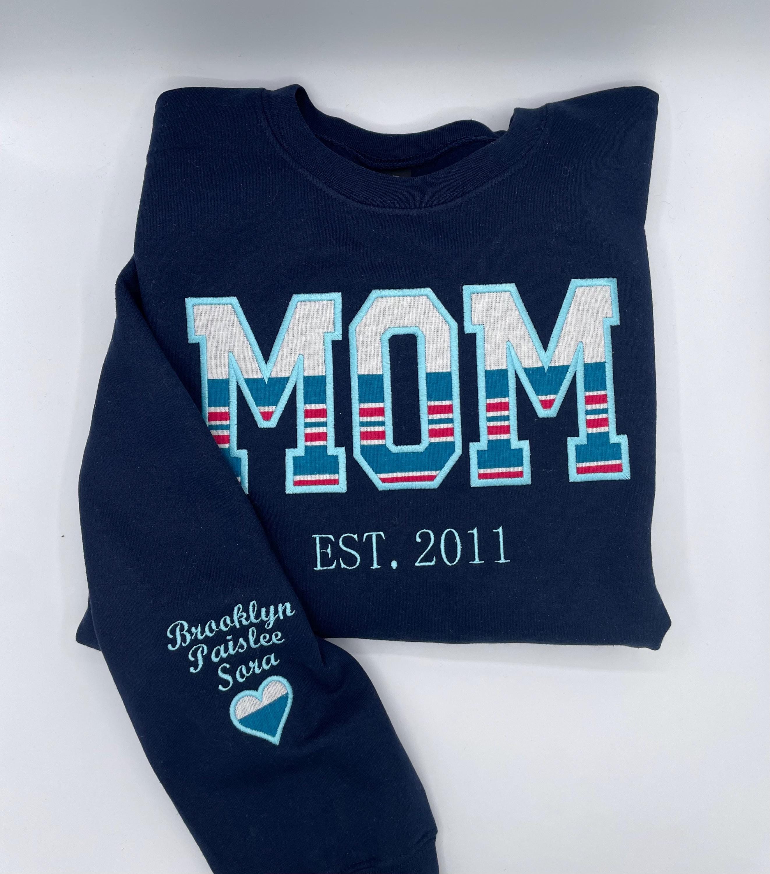Personalized embroidered MOM applique fleece sweatshirt using your baby's hospital blanket, favorite baby outfit, or any material you would like!